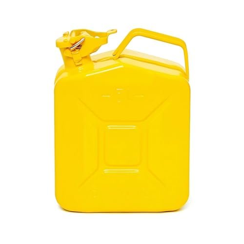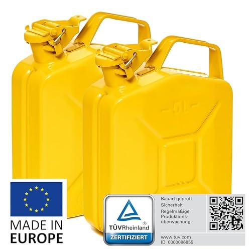 Hochwertiger 5L Metallkanister: Aus robustem, pulverbeschichtetem 0,9mm Stahl nach DIN 7274 gefertigt für langlebige Nutzung und Korrosionsbeständigkeit | Sicher & zugelassen: NATO Jerrycan – TÜV, UN, GGVSE und BAM zertifiziert – erfüllt höchste Sicherheitsanforderungen | Schnelles, sauberes Ausgießen: Großer Ausgießer mit breitem Entlüftungskanal für schnelles sicheres Betanken in unter 25 Sekunden | Vielseitige Anwendung: Geeignet für Benzin, Diesel, E10 und 2-Takt-Gemische – ideal als Reservekanister | Großes Fassungsvermögen: 5L Volumen, perfekt für lange Fahrten oder professionelle Einsätze (Generator, Boot, Offroad, Werkstatt)